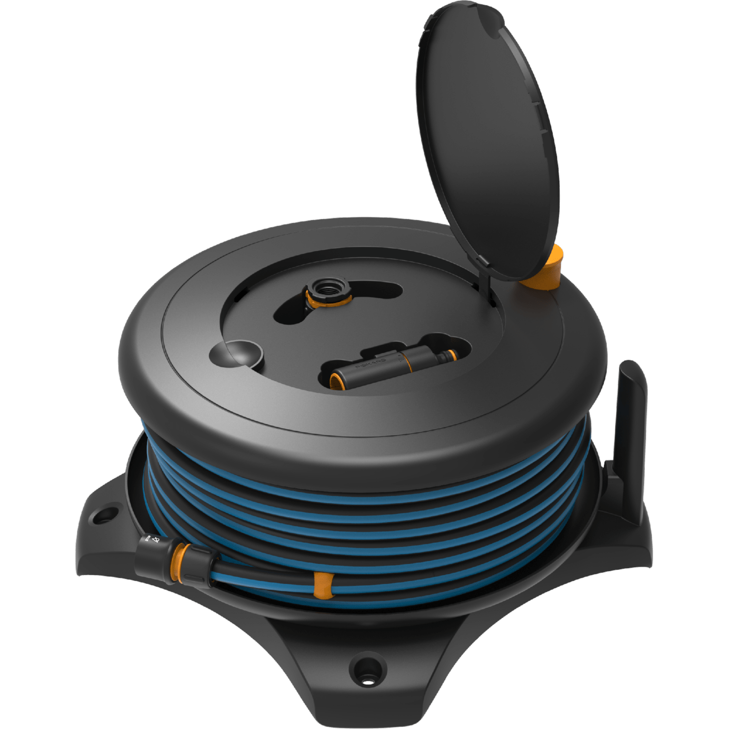 A készlet azonnali használatra készült, tartalmaz egy 13 mm (1/2") átmérőjű, 20 méter hosszú tömlőt és a szükséges tartozékokat. A készlet teljes hatótávolsága akár 21,5 méter. Szükségletei szerint a dob szabadon álló segédeszközként használható a gyepen, vagy falra is rögzíthető a választható tartóval (rendelési szám: 1059235), így helyet takaríthat meg a tárolás során.