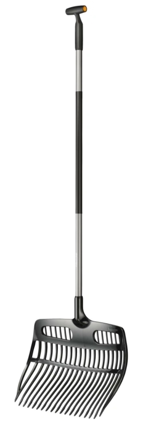 A Fiskars Ergonomic™ lapátos gereblyék többcélú kerti szerszámok, amelyek könnyű gereblyézésre, áthelyezésre és nagy mennyiségű anyag átszitálására lettek tervezve. A könnyű, de tartós polikarbonát lapát törésálló, és alkalmas fű, falevél vagy komposzt kezelésére. A műanyag bevonatú edzett alumínium nyél kényelmes fogást biztosít, és csökkenti a munka közbeni megterhelést. A gereblyék ideálisak használatra a kertben, az udvaron és a pajtában.