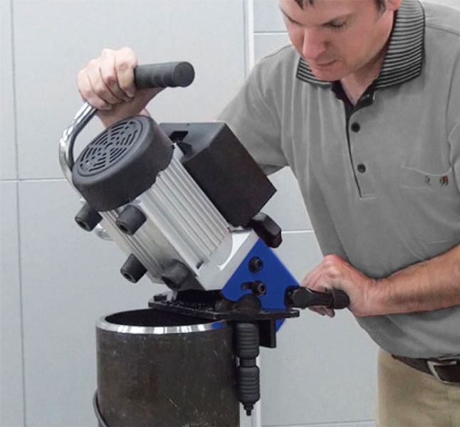 Kézi fazékcsiszoló a rozbontás eltávolítására nemesacél és más anyagok esetében, folyamatosan állítható 0-60° szögben. Fazékcsiszolás akár 21 mm-es fazékméretig. Állítható vezetők lehetővé teszik csövek fazékcsiszolását is.