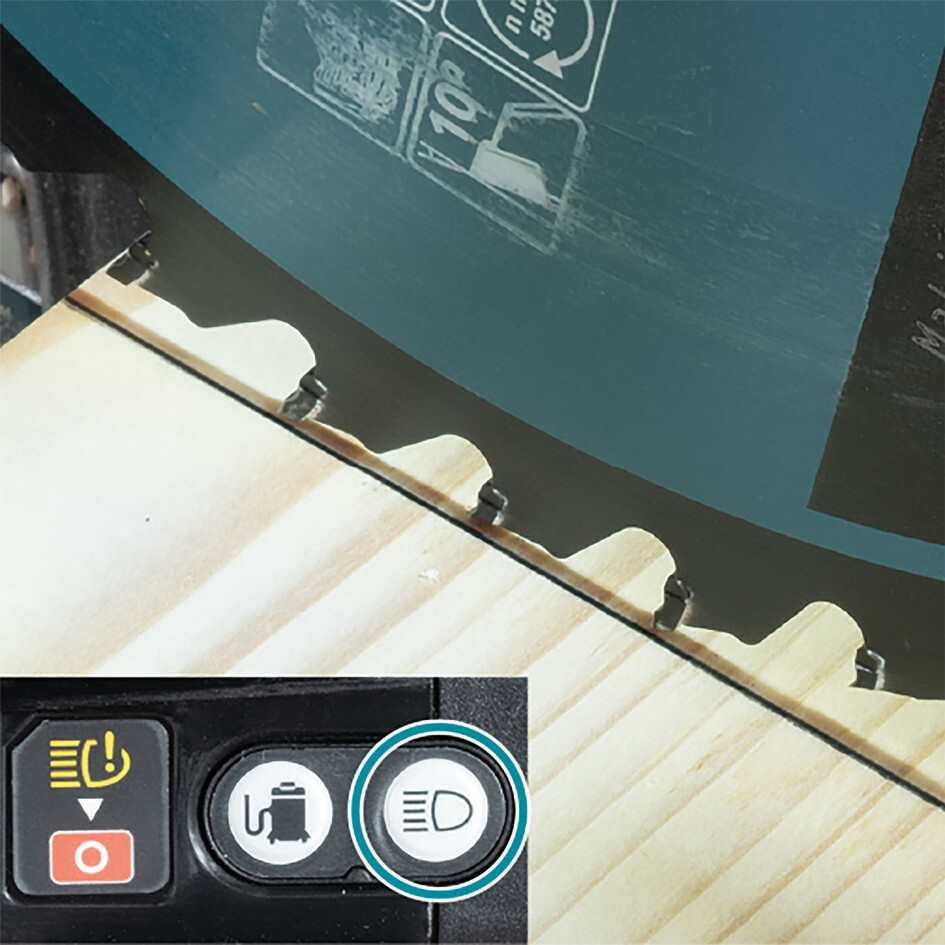 A motor elektronikus fékkel van felszerelve, amely azonnal megállítja a fűrészlapot.
