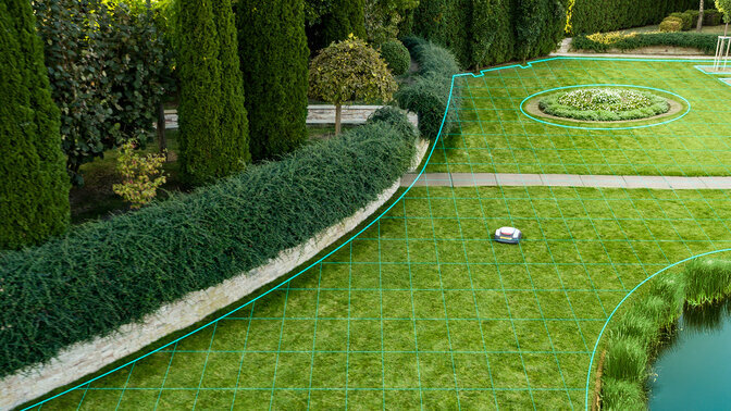 A Miimo Live modellek intelligensebb navigációt kínálnak, így a fűnyírás hatékonyabb, mint valaha. Most, hogy a Miimo fűnyíró kábel- és műholdas navigációs funkcióval van felszerelve, kevesebb nyomot hagy a tökéletesen nyírt gyepén. Szabad zónákat is beállíthat, hogy megakadályozza a fűnyírást bizonyos területeken.