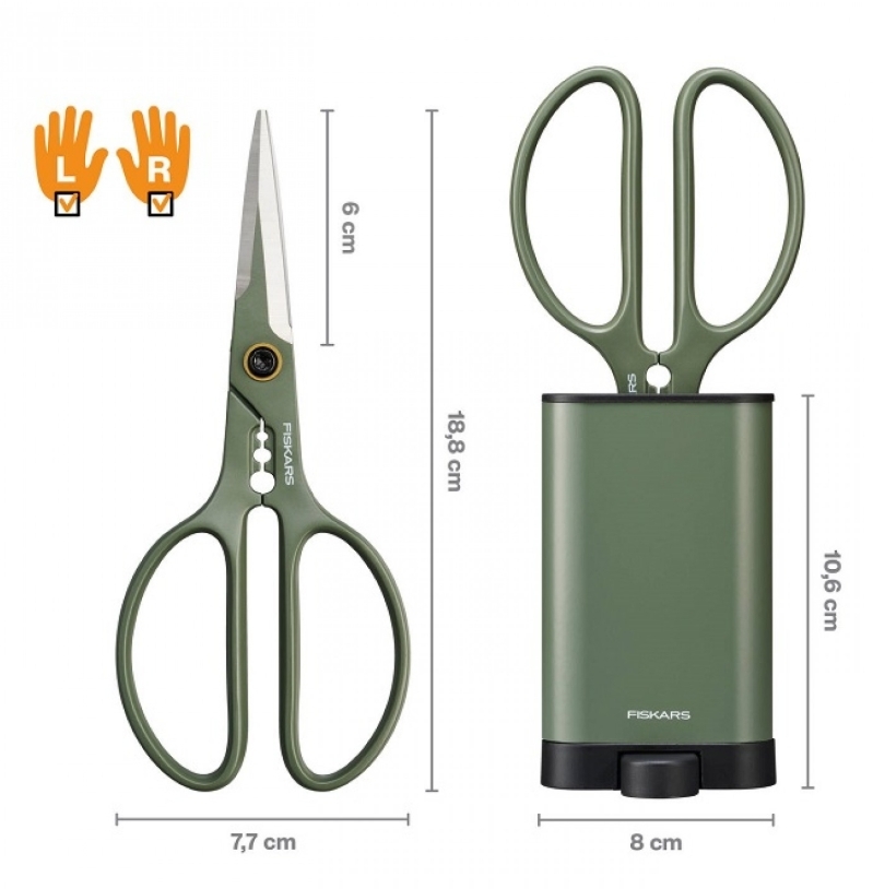 Ennek a modellnek az egyedi eleme a beépített szárvágó, amely hatékonyan eltávolítja a felesleges leveleket és töviseket, megkönnyítve a virágok előkészítését vázába vagy további feldolgozásra. A nagyobb lyukak a fogantyúkon maximális sokoldalúságra lettek tervezve, így az olló jobban használható jobb- és balkezesek számára is. A csomag része egy stílusos, szabadon álló tok, amely biztonságos tárolást biztosít, és egyben modern dizájnelemként is szolgál otthonában.