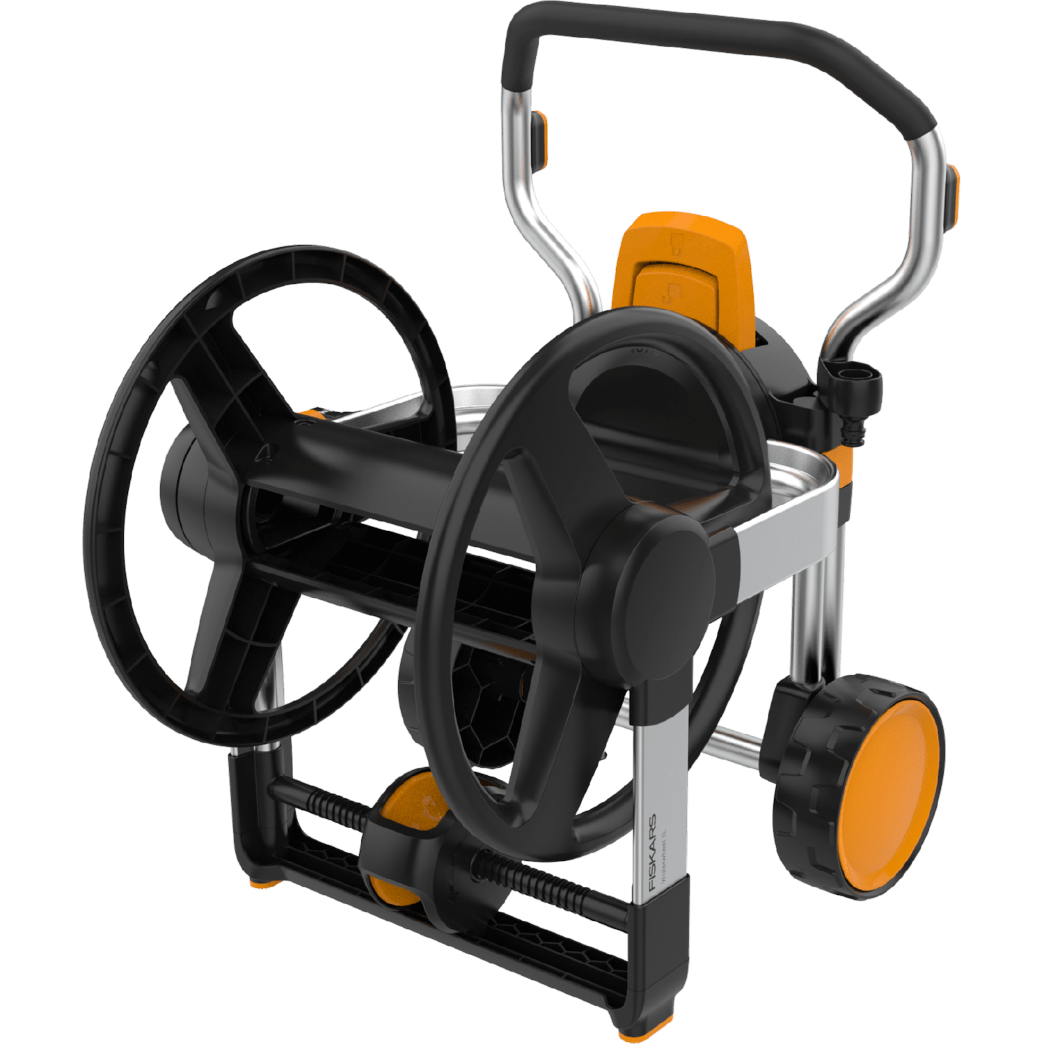 A konstrukció szabadon álló elhelyezésre és 360°-os forgásra lett tervezve, ami lehetővé teszi a kényelmes öntözést minden irányba anélkül, hogy folyamatosan mozdítani kellene az alapot. A dob vízszintes helyzete biztosítja a szükséges stabilitást és megakadályozza a felborulását a tömlő letekerésekor. A munka megkönnyítése érdekében a dob vezető görgővel van felszerelve, amely garantálja a sima feltekerést csomók és csavarodás nélkül. Az univerzális csatlakozási rendszer emellett teljes kompatibilitást biztosít más gyártók alkatrészeivel.