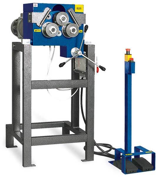 080-as profilhajlító lábbal vezérelve – négyzetes, téglalap alakú és kör keresztmetszetű rudak, L és T profilok, valamint kör, ív vagy akár spirál formájú csövek hidegen alakítható anyagokból történő hajlítására készült.